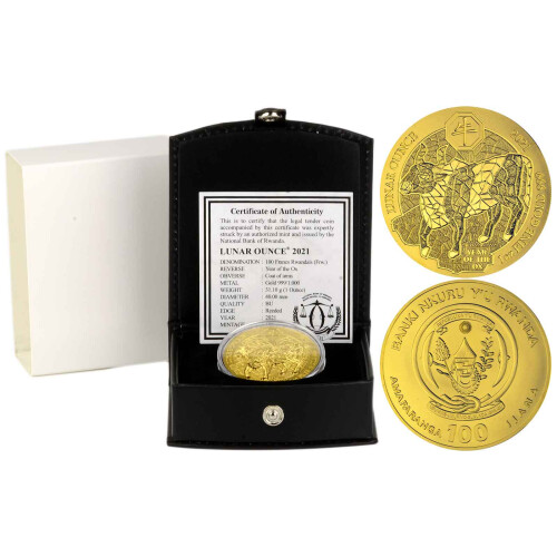 100 Francs Ruanda 2021 - 1 Unze Gold BU - Lunar: Jahr des Ochsen